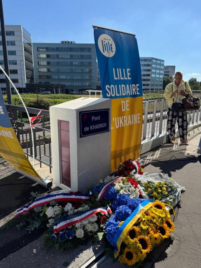 “Від імені мерії Лілля українців привітала перший заступник мера Шарлотта Брун, яка наголосила на незламності українського народу та важливості європейської підтримки”, — розповіли в мерії Харкова.
