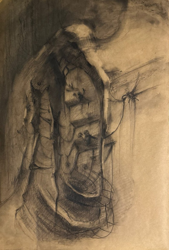 Найбільше моїх робіт створені у графічній техніці вугілля. Вони наче темні, але несуть у собі світло. Вони закарбовують метафоричне світло, допомагаючи людям сьогодення справлятися з війною.