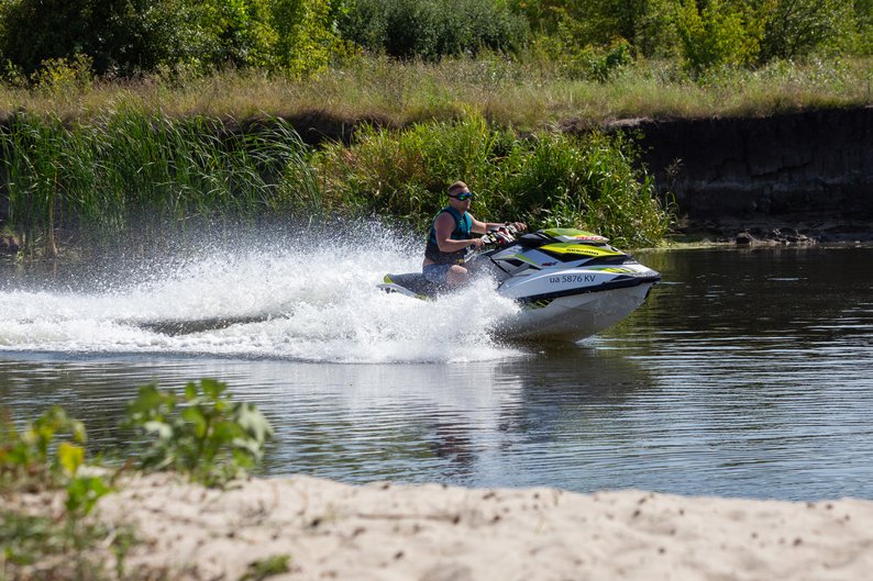 Гідроцикл їде повз пляж на Сіверському Донці, Харківська область, літо 2025 року. Фото надала Ангеліна Климова