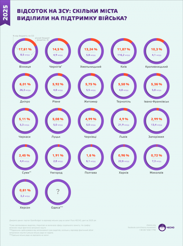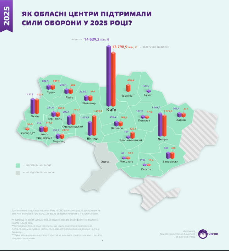 Скільки грошей виділили обласні центри на підтримку війська у 2025 році. Рух “Чесно”
