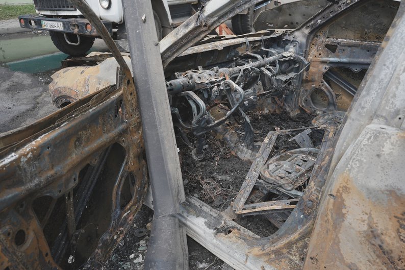 Автівка Максима Новака Mazda X5, яка згоріла після авіаудару РФ 24 липня 2025 року. Суспільне Харків/Вікторія Якименко