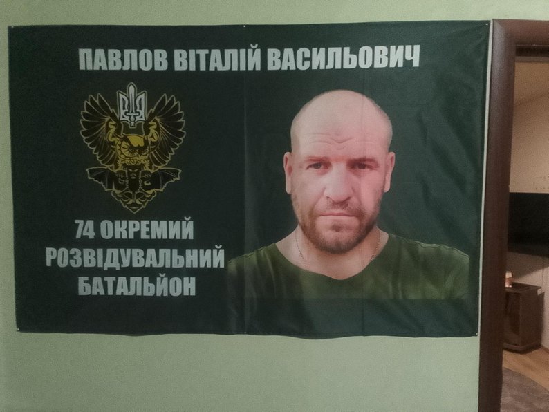 Прапор з фотографією Віталія Павлова. Фото надала мати військового Любов Павлова