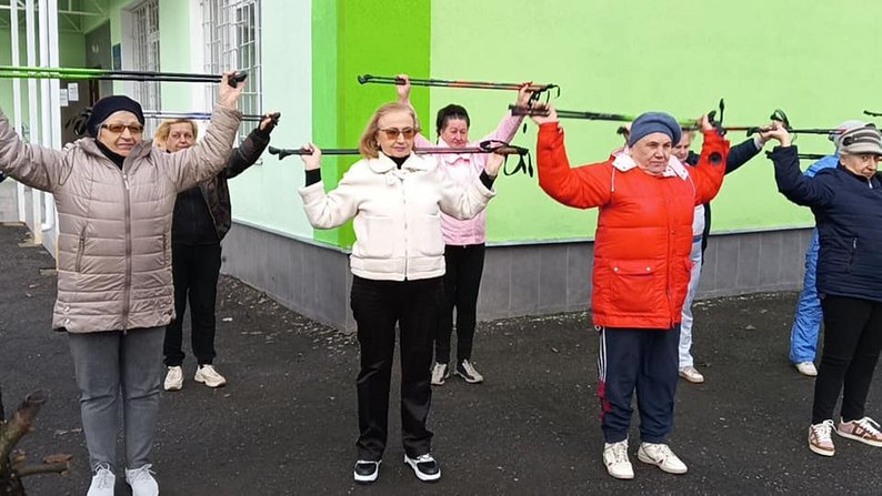 Світлана Горбунова-Рубан з підопічними територіального центру на занятті зі скандинавської ходьби, грудень 2022 року. Світлана Горбунова-Рубан/Facebook
