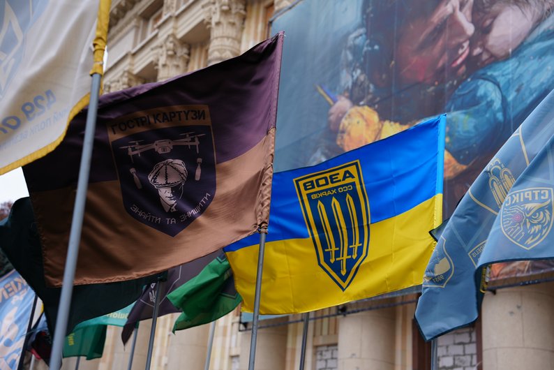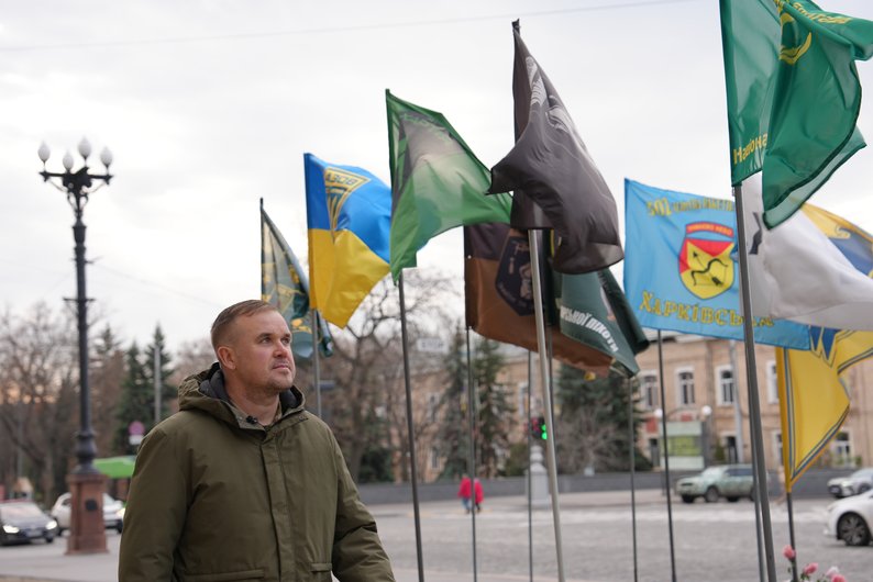 Прапор сил тероборони, Харків, листопад 2025 року. Суспільне Харків/Олександр МанченкоЇхня (росіян — ред.) мета — знищення нашої національної ідентичності. Чому важливий особисто для мене націоналізм, як ідеологія? Тому що наш ворог так само знає, що це важливо. Що вони роблять з поневоленими народами своєї недодержави? Вони їх асимілюють, розмивають. Скільки вже зникло етнічних мов, народностей? Коли вони змінюють назви в адміністративних округах з автентичних регіональних назв.