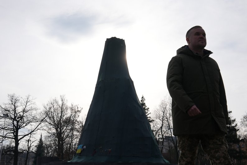 Вадим Батій біля пам’ятника Тарасу Шевченку в Харкові, листопад 2025 року. Суспільне Харків/Олександр МанченкоЇх почали розганяти в Києві, для мене це був як маркер, що це моя двіжуха.