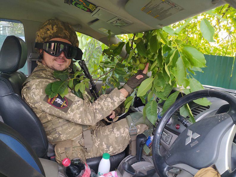 Вадим Батій на службі. Фото надав Вадим БатійКоли ми були на Салтівці, я виходжу з приміщення — а в п’яти метрах гараж, в якому стоїть матусина машина. А триста метрів від позиції — квартира, в якій я народився. Коли ставили питання, якщо буде прорив, то як нам, що? — Я казав: "Так тут же ж доріжки, спуск, а там за аркою — ще доріжка, а тут — паркан, а за парканом є прохід, і ми сюди обійдемо". І очі горять. Це моя земля, обломиться їм усім, усіх вб’ємо, усіх знищимо.