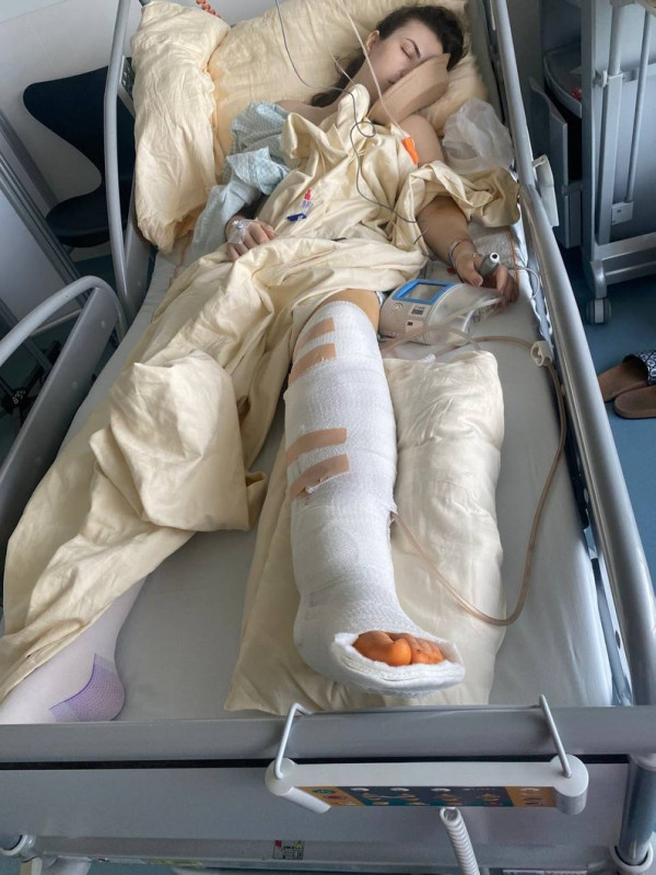 "Але це ще не кінець, тому що буквально за півтора місяця я знову маю ряд оперативних втручань. Я ще не знаю кількість цих операцій, але це не одна, не дві, не ти, не чотири. Тому що я маю дефект довжини ноги. Плюс в мене в нозі стоїть металевий біос — це метал, який вкладений від коліна до п'яти ноги. Він, власне, тримає мою ногу. І, власне, на ньому приживляється кістка, яку наростили", — говорить Анастасія.