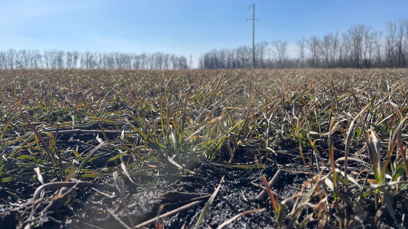 Поле з озиминою на Харківщині, березень 2024 року. Суспільне Харків/Микита Ольховський