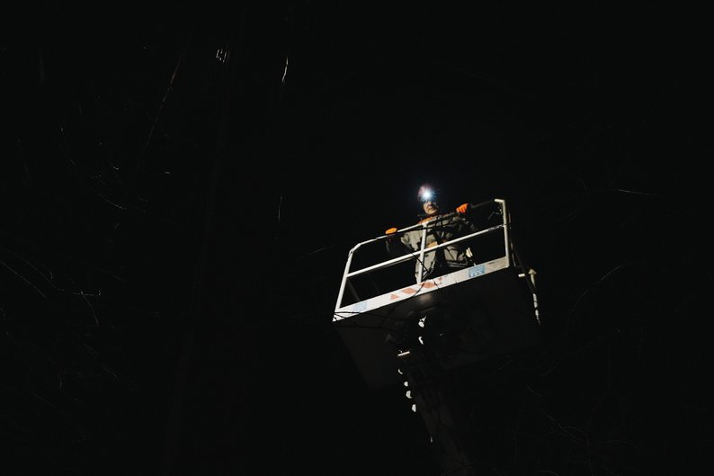 Енергетик відновлює електропостачання після удару КАБ по Слобідському району Харкова, 19 січня 2026 року. Суспільне Харків/Вікторія Якименко