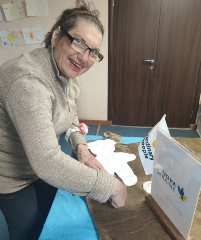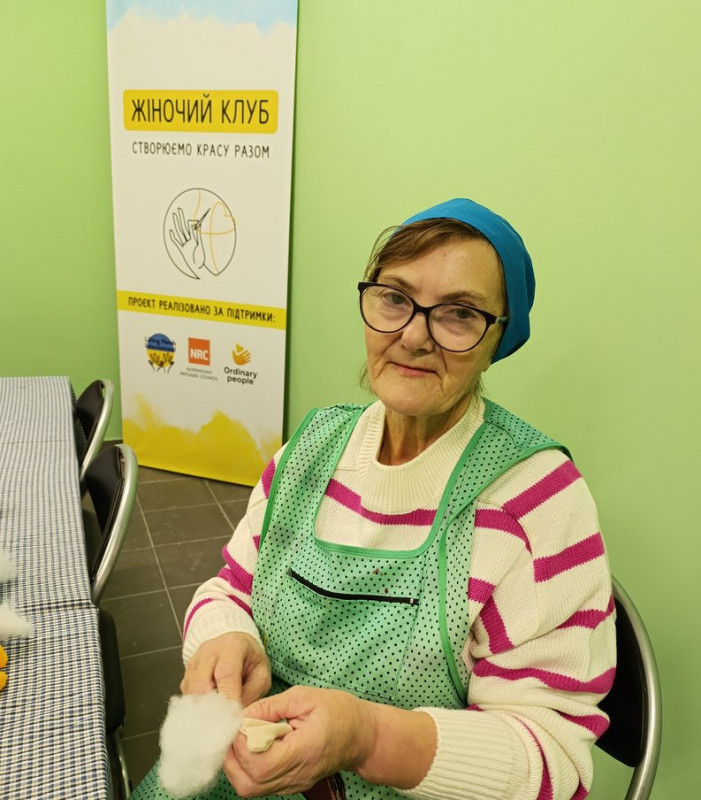 "У нас є жіночка пенсіонерка, у неї син працює на оборонпром, вона за нього переживає. Є жінка, у якої рідна людина загинула на війні, захищаючи країну. Для неї це можливість відволіктися від повсякденної рутини. Жінка живе майже сама, до неї навідуються онуки, але більшість часу вона проводить самотньо. Є жінка молода, але у неї великі проблеми зі здоров'ям. Вона відвідує постійно лікарню, і вдома відволікається за творчою роботою — вишиває іграшки, картини бісером. Вона приходить до нас і працює з текстилем”, — розповідає майстриня.