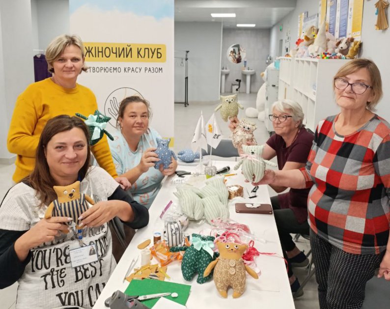 Жінки на занятті в “Жіночому клубі” на Харківщині шиють котиків. Команда ГО “Звичайні люди”