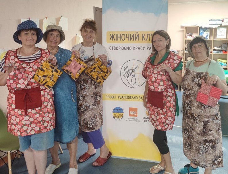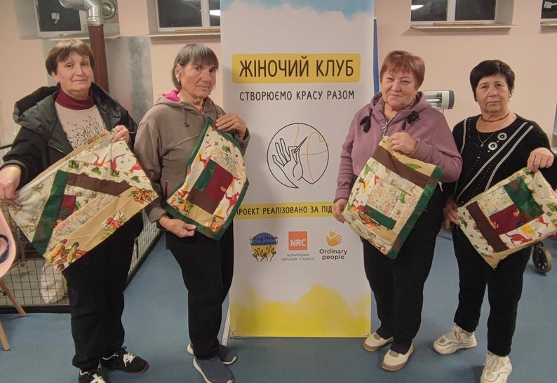 Учасниці “Жіночого клубу” на Харківщині зі своїми виробами. Команда ГО “Звичайні люди”