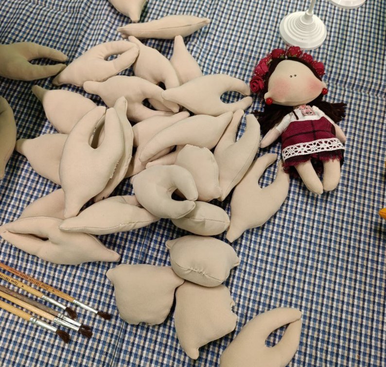 "Одна жінка у нас, коли пошила першу наволочку свою, вона танцювала. Сказала, що це всі 60 років була її мрія — змолоду хотіла навчитися шити, а сама вона — вчитель фізкультури. Шили іграшки весною. Почали просто з джинсових котиків, а дійшли до того, що дали їм всім імена, потім придумали, що тут є дівчинка і хлопчик, попришивали їм бантики, сумочки. Дійшло до того, хто з ким буде жити. Там ціла історія котяча вийшла", — розповідає Людмила.