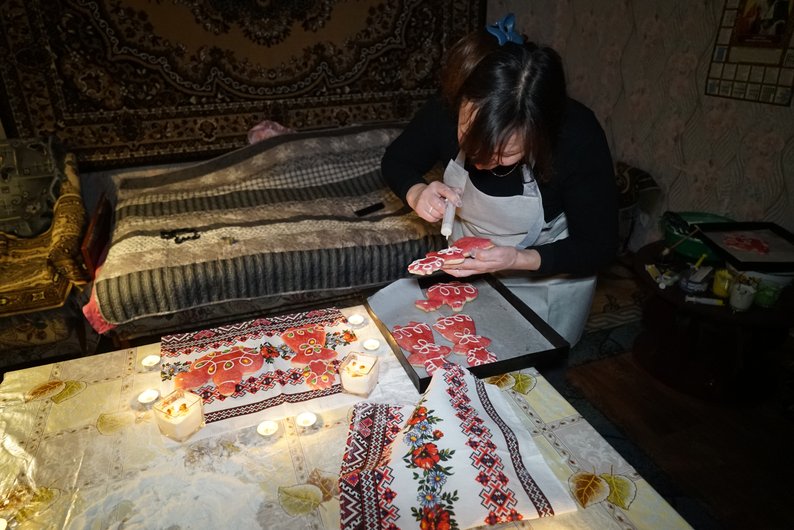 Матір Наталії Валентина Костенко допомагає розмалювати “панянок”, грудень 2025 року. Суспільне Харків/Валерія Ємець