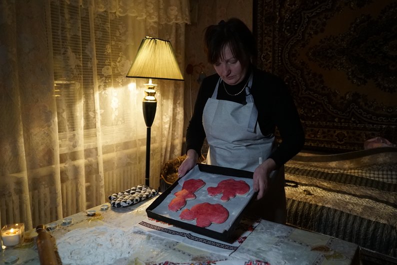 Далі панянку Наталія вирізай формами, у неї їх дві — коня й дівчини. Майстриня каже, що цим формам — 100 років: "Це ще випікала бабуся, ще дідусь робив. Ці форми тоді ще були зроблені і вони передавалися з покоління в покоління".