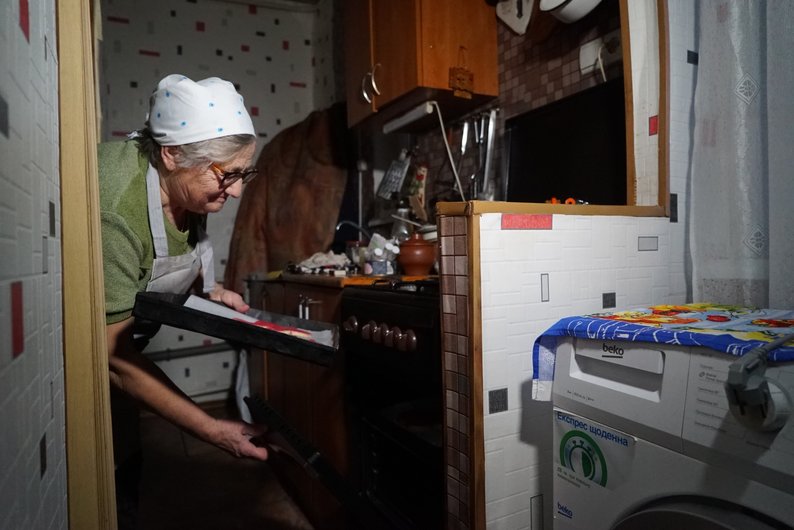 Матір Наталії Валентина Костенко допомагає ставить “панянок” у піч, грудень 2025 року. Суспільне Харків/Валерія Ємець