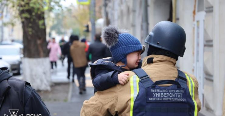 У ДСНС показали світлини, як рятувальники і поліцейські виносили малечу на руках із задимленого приміщення. Судячи зі світлин, під час атаки у будівлі приватного дитсадка перебували діти віком від двох років.