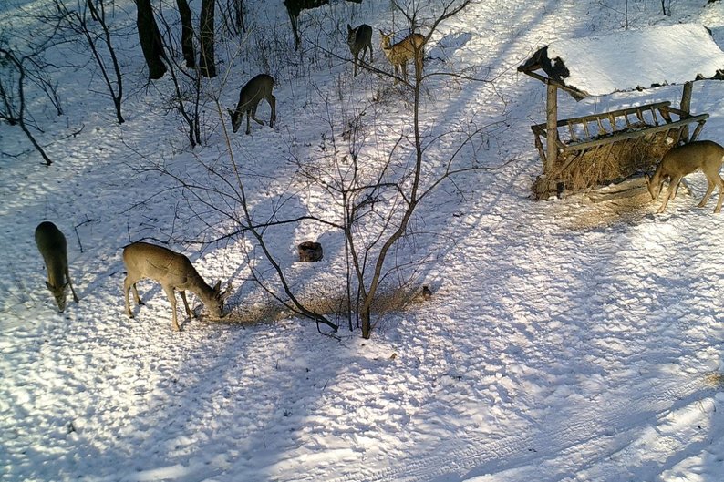 Козулі біля годівничок. Фото надав Дмитро Бугло