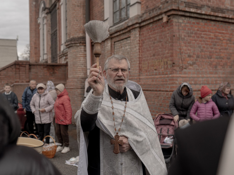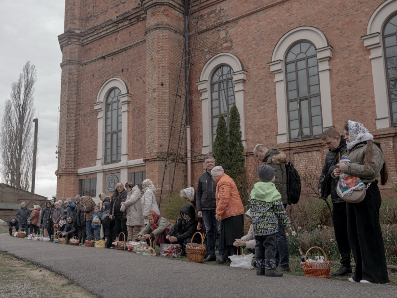 Освячення великодніх кошиків у храмі святого Іоана Богослова в Харкові напередодні Великодня, 11 квітня 2026 року. Суспільне Харків