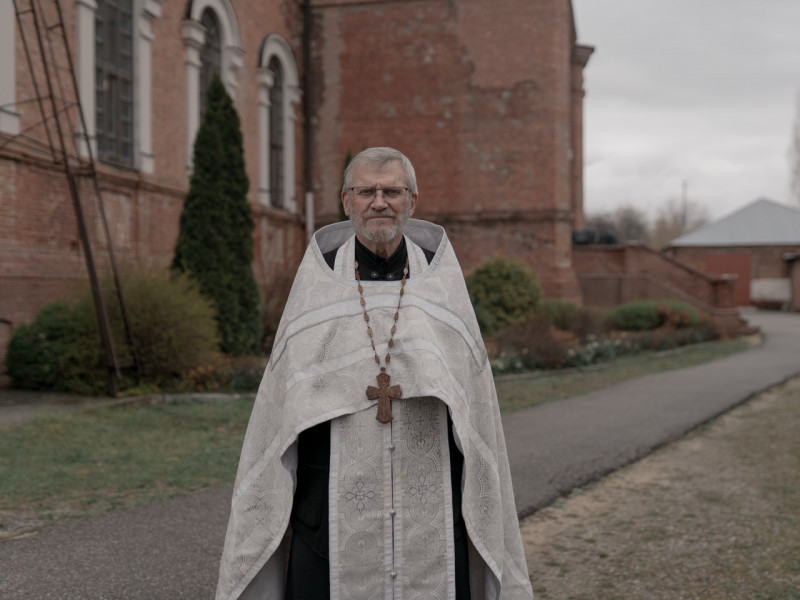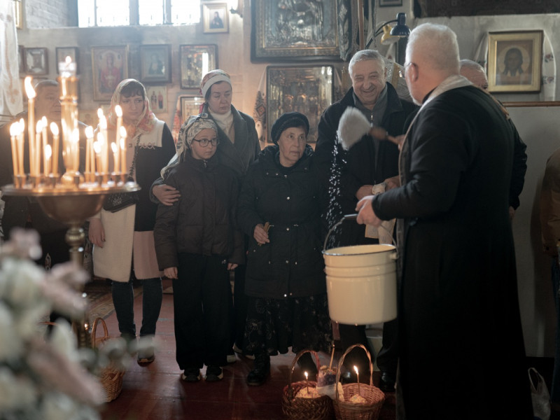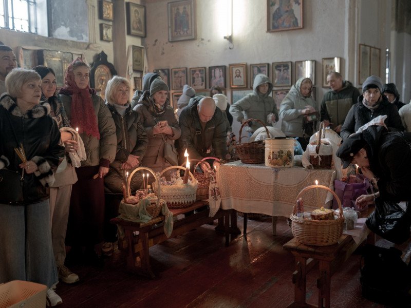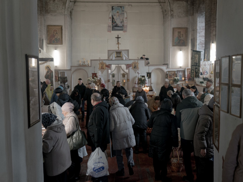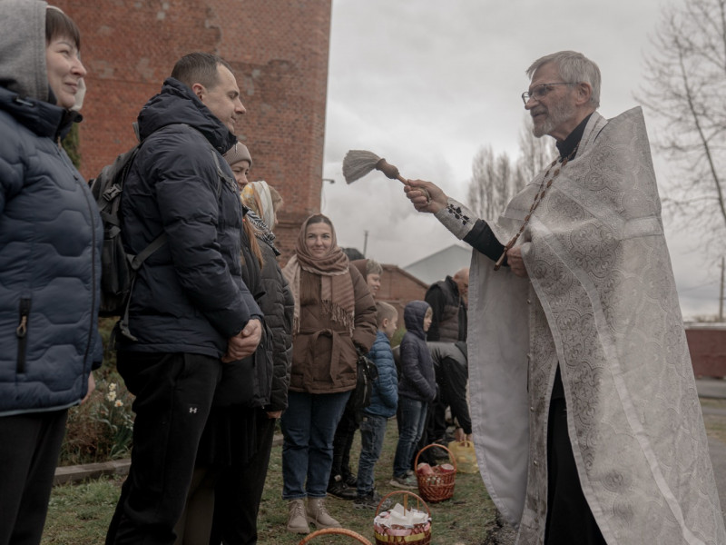 Освятити паски напередодні Великодня до храму прийшов переселенець з Козачої Лопані Сергій Несміян. Каже, він з сім'єю сумують за домом та можливістю навідати місця поховання родичів.