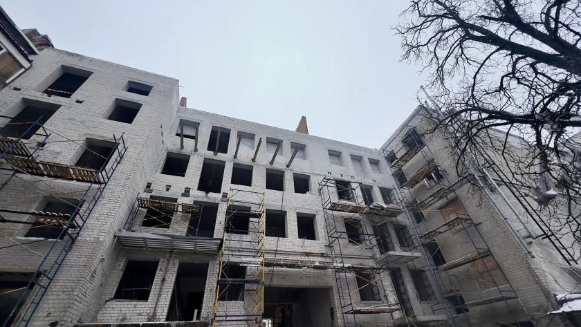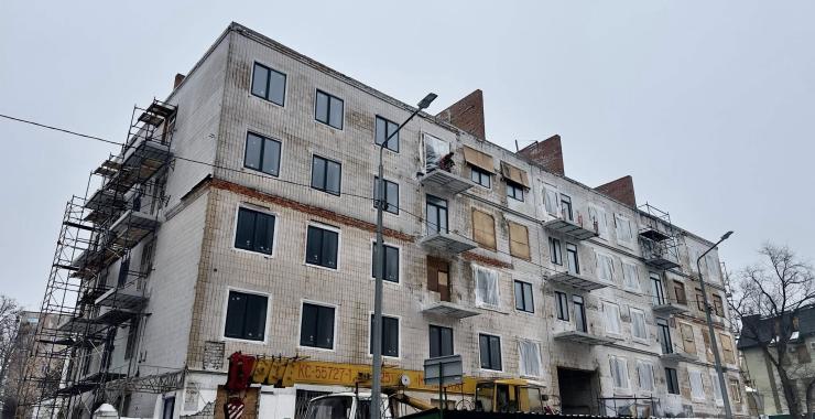 “На об’єкті вже відновили всі зруйновані стіни та перекриття, встановили понад 60% від загального обсягу нових вікон, а також відбудували балкони на 85%. Наразі фахівці приступили до робіт з відновлення покрівлі – триває влаштування стропильної системи. Паралельно виконується монтаж металоконструкцій для посилення дверних і віконних отворів, а також відновлення сходових маршів”, — повідомили у департаменті з благоустрою, відбудови та реконструкції міськради.
