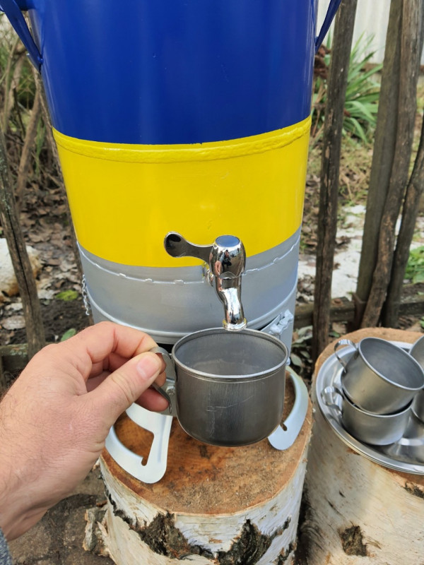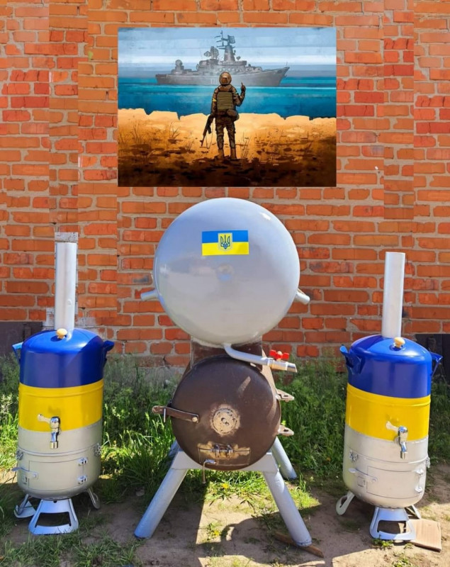 За його словами, "Водограй" спеціально зробили розбірним, щоб військовослужбовцям було легше його перевозити під час раптових переїздів. Також "Залізо і молот" виготовляють універсальні міні пічки — "Чайники", розповідає волонтер. Каже, одну з них подарували Валерію Залужному, а ще одну підрозділу — "Kraken".