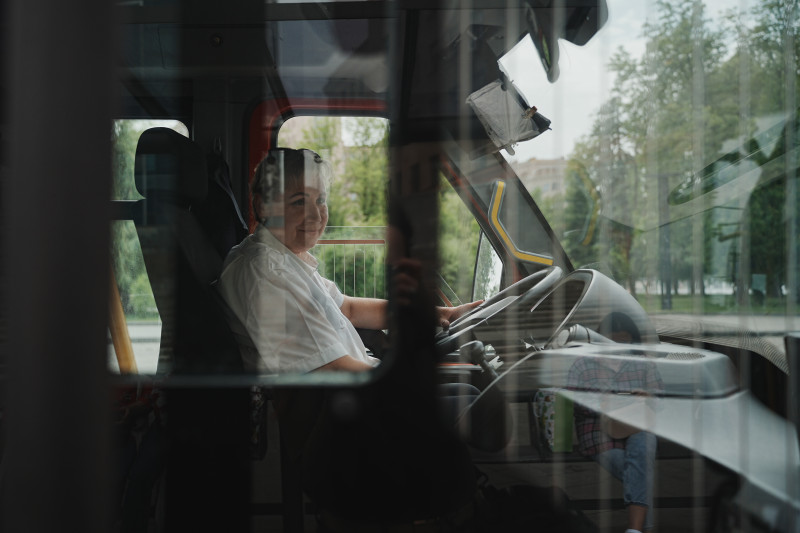 Про роботу на маршрутному автобусі, говорить водійка, замислилася після початку повномасштабної війни — так хотіла допомагати людям.