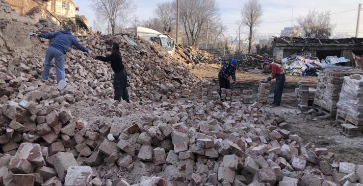 Уже рік архітектори, студенти та інші небайдужі харків’яни, об’єднані у “Спільному відновлення спадщини в Харкові”, працюють на місцях знищених обстрілами пам’яток. Вони старанно відчищають від сміття цінні деталі — переважно це старовинна цегла. Такого досвіду співпраці волонтерів та комунальних служб задля порятунку спадщини немає в жодному іншому місті України.