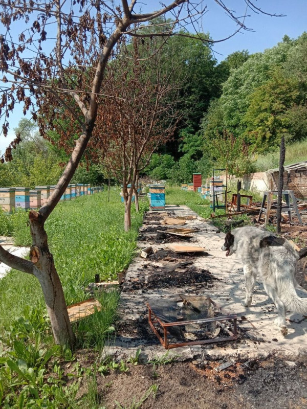 "Зараз немає вже там вцілілих будівель. Сподіваюсь, що ще там щось із майна збереглося, тому що там дуже багато вуликів залишилося — 110 сімей. Я частину корпусів вивіз. Вони були посічені, кришки побиті", — говорить Іванов.