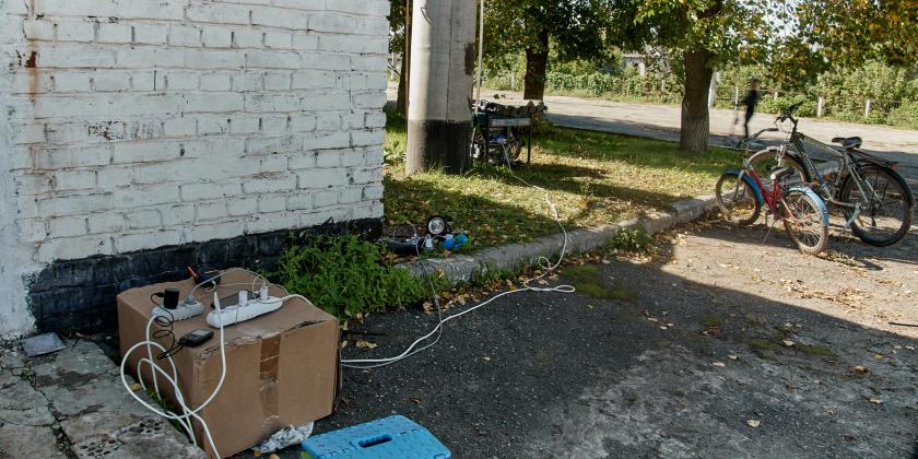 У Боровій два тижні немає світла, люди заряджають телефони від генераторів.