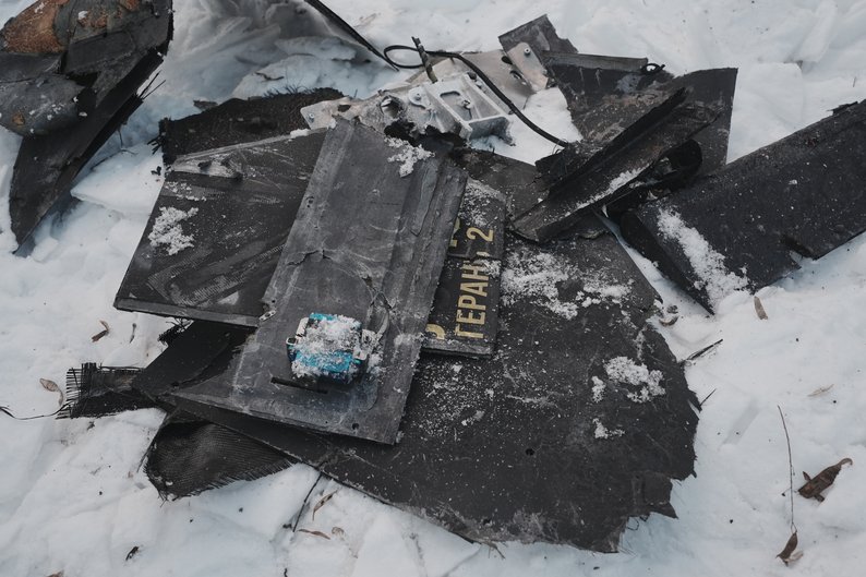 Уламки дрона, яким росіяни атакували Салтівку у Харкові, 3 лютого 2026 року. Суспільне Харків/Вікторія Якименко