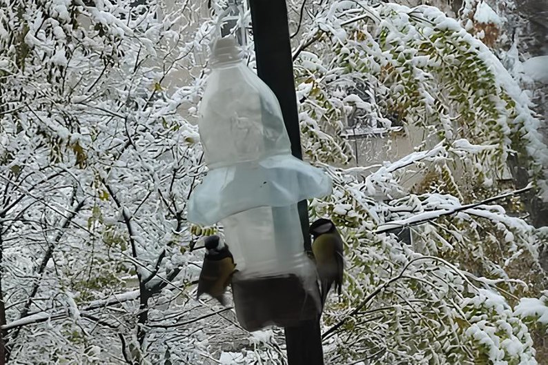 "У мене висить на балконі годівничка із пластикової пляшки, і я туди щодня насипаю склянку насіння. Птахи його розбирають за день — вони не стільки їдять, скільки ховають корм, коли мають його багато одразу, розносять по найближчих деревах і засовують за кору. Коли не буде корму — вони будуть там шукати й знайдуть. Насіння соняшника переважно для синиць і для горобців, інколи повзик залізе в ту годівничку. В мене навіть голуби вже такі вправні, що сідають на годівничку і теж їдять — це окремі просунуті особини, що можуть таке робити", — каже науковиця.