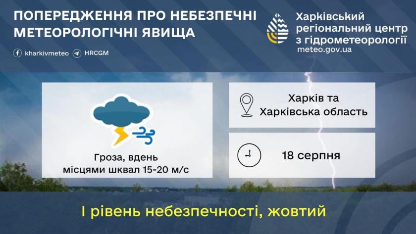 У понеділок, 18 серпня, буде набагато прохолодніше, аніж в неділю. Температура повітря знизиться з +32 до +19…+24 градусів, вдень можливий короткочасний дощ і навіть грози. Синоптики попереджають про шквальний вітер 15 – 20 м/с, який може призвести до ускладнень в роботі транспорту.