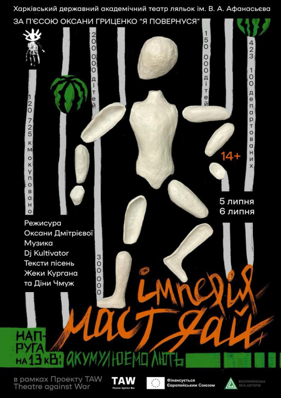 Прем’єра вистави "Імперія маст дай" відбудеться 5 та 6 липня у Харківському театрі ляльок імені Афанасьєва. В її основі — історії підлітків з Херсона, яких окупаційна влада вивезла до Криму під виглядом відпочинку.