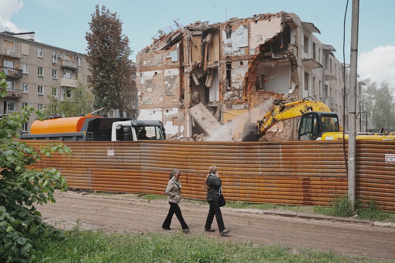 "На сьогодні роботи тривають у четвертому, п’ятому і шостому під’їздах — вони знесені майже на 80%. Сміття, яке демонтується, піддається первинному сортуванню і транспортується на місця тимчасового зберігання відходів руйнувань", — розповів Віталій Мельник.