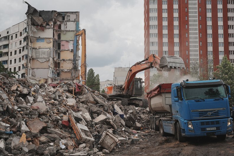 За даними аналітика, з двох будинків, які зносять у Харкові у травні, вивезли близько трьох тисяч тонн будівельного сміття. Його можуть використати, зокрема, для підсипання доріг.