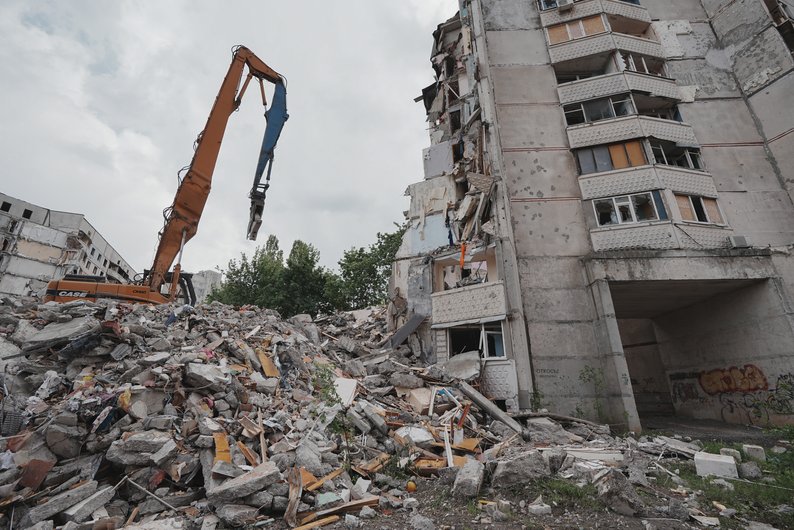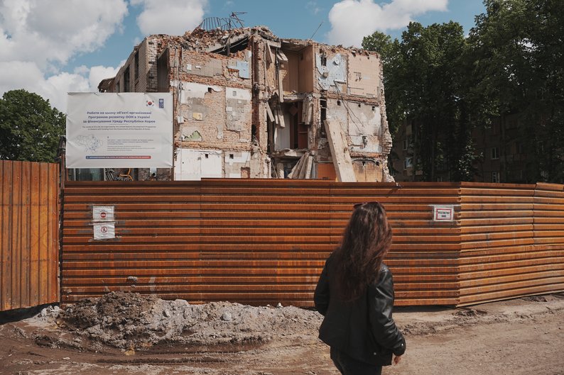 Зносять будинок №62 на вулиці Наталії Ужвій у Харкові, травень 2025. Програма розвитку ООН в Україні