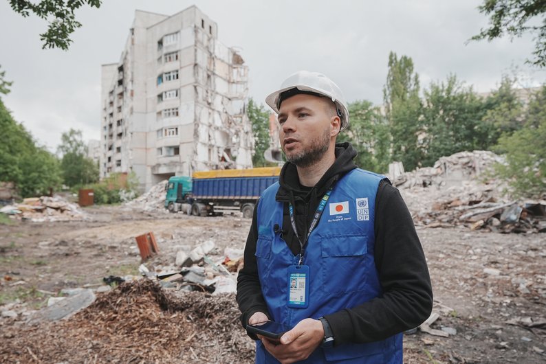 Ще один зруйнований будинок, який розбирають за допомогою ПРООН, розташований на Північній Салтівці, демонтаж оплачує уряд Японії, говорить Віталій Мельник.