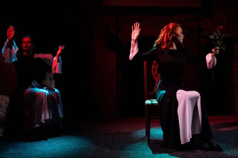 Акторки театру “Impresario” грають на сцені виставу “Залишити чи залишитися”. Фото надала Марія Мачихіна