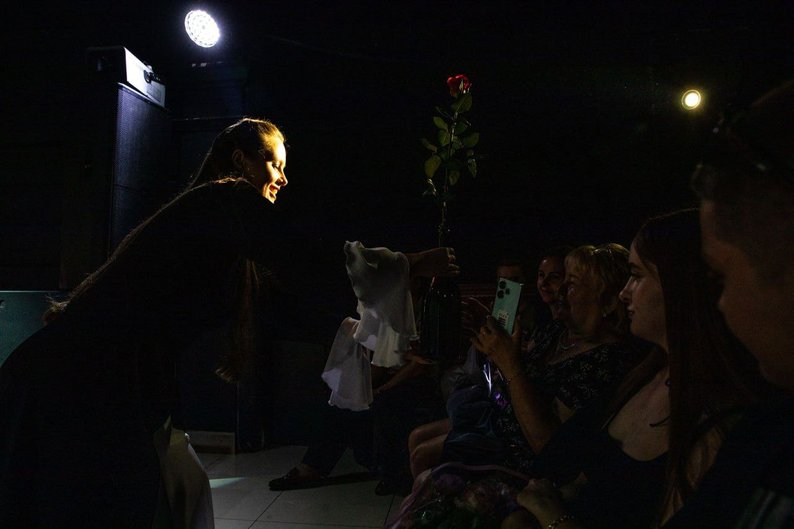 "Наші вистави напряму не пов’язані з військовими темами, принаймні зараз. У нас більше про внутрішні почуття людини. І навіть ця вистава "Залишити чи залишитися" — це про почуття жінки, більше психологічні мотиви. Є теми, які ми не показуємо у виставі напряму глядачеві, але кожна людина починає розуміти для себе якісь сенси, те, що її турбує", — розповіла Марія.