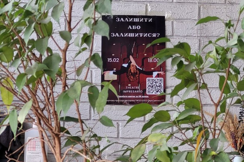 15 лютого у Харкові відбудеться показ вистави "Залишити або залишитися", яку покаже театр "Impresario". Її почали грати у липні 2025 року, розповіла Марія, і саме ця вистава, за її словами, стала справжнім народженням їхнього театру.