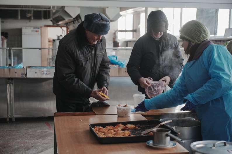 Григорій Гладиш у пунктів видачі безплатних обідів. Суспільне Харків/Вікторія Якименко