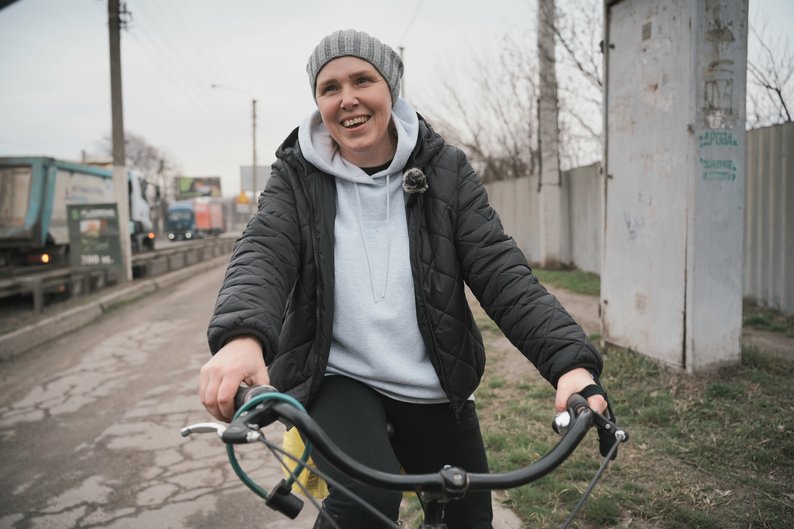 На велосипед жителька Пісочина під Харковом Людмила Прилуцька пересіла тиждень тому — після того, як віддала свою автівку в ремонт. Каже, та зламалася після їзди по розбитих дорогах, а особливо на київській трасі.