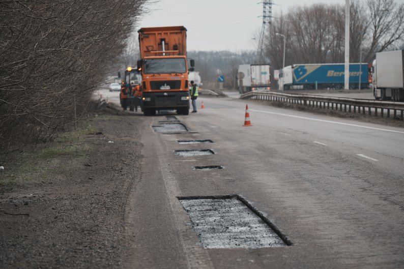 Одну з аварійних ділянок цієї траси — у півтора кілометра до в’їзду в Харків — почала ремонтувати бригада виконроба Романа Горопашного.