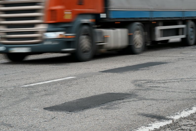 Вантажівка їде по київській трасі, де ліквідували ямковість, Харківщина, березень 2026 року . Суспільне Харків/Вікторія Якименко