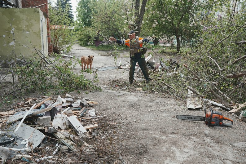 Роман Кручинін працює на місцевому комунальному підприємстві. Каже, доводиться робити без вихідних та відпусток — після обстрілів прибирають сміття та прибудинкові території, розчищають дороги. Каже, що з оголошенням "перемир'я" стало тихіше.