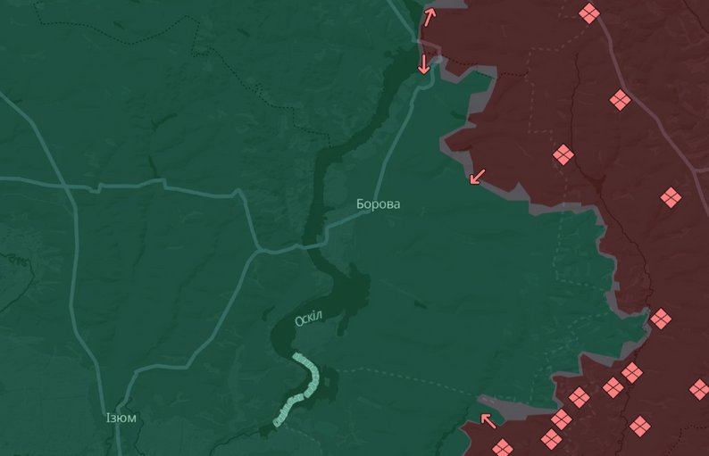 Борова на мапі. DeepstateМи зараз і листівки їм (жителям — ред.) там передаємо, розповсюджуємо і закликаємо, що, шановні, далі зима, далі холодно, зовсім буде ситуація непроста. Й евакуація буде ускладнюватися, це лівий берег, переправа через річку. Все це ускладнює процес евакуації, тому працюємо в цьому напрямку.