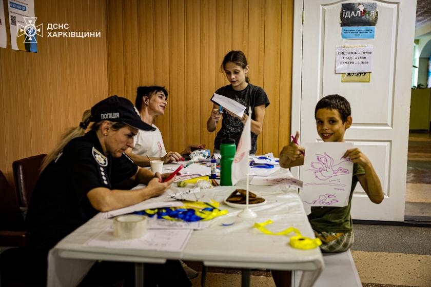 Діти в транзитному центрі в Лозовій. Фото: ДСНС