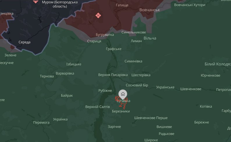 Бугаївка на мапі, 19 грудня 2025 року. Deepstate