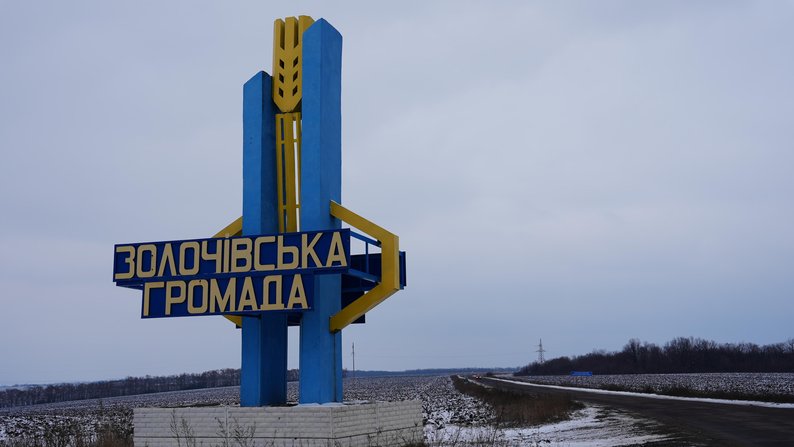 Стела на в’їзді до Золочівської громади, Харківська область, 4 лютого 2025 року. Суспільне Харків/Валерія Ємець